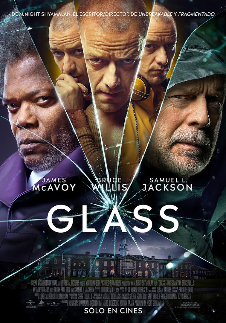 Glass es la tercera entrega de una serie de películas ideada por M. Night Shyamalan, que cuenta con personajes de El protegido y Fragmentado. En este thriller veremos de nuevo a David Dunn (Bruce Willis) y Elijah Price (Samuel L. Jackson), conocido bajo el pseudónimo de Mr. Glass, que aparecerán junto a Casey Cooke (Anya Taylor-Joy), la única víctima de La Bestia que ha sobrevivido, y Kevin Wendell Crumb (James McAvoy como) y sus múltiples personalidades. La trama se centrará en el enfrentamiento que organizará con sus acciones Price, un hombre que guarda ciertos secretos de todos protagonistas, mientras Dunn persigue a Crumb en una serie de encuentros cada vez más intensos.